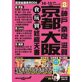 全港唯一飽覽京都、大阪、神戶、奈良、滋賀、和歌山白? 等關西名小強最後的晚餐勝地,新加京都丹後及滋賀分區,內容大增32頁,全書合共42分區逾700個食玩買熱點。