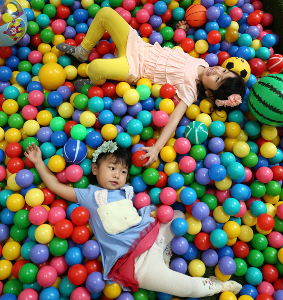 找找看球池裡面有哪些不同觸感、形狀的球呢?