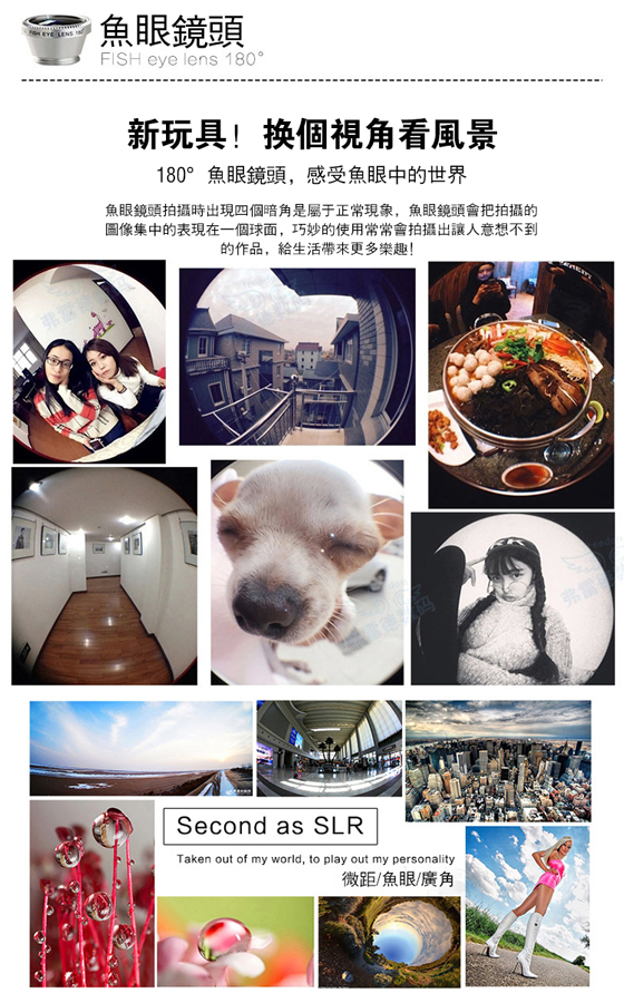 .....宅配讓手機也化身成專業相機,多樣化鏡頭組合,輕易拍攝出不凡新世界!安裝簡單方便,輕輕一夾即可使用
