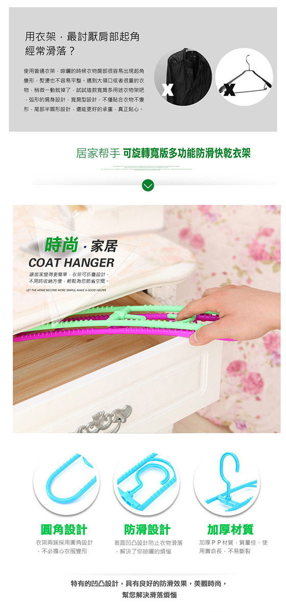 .....可旋轉寬版多功能防滑快乾衣架