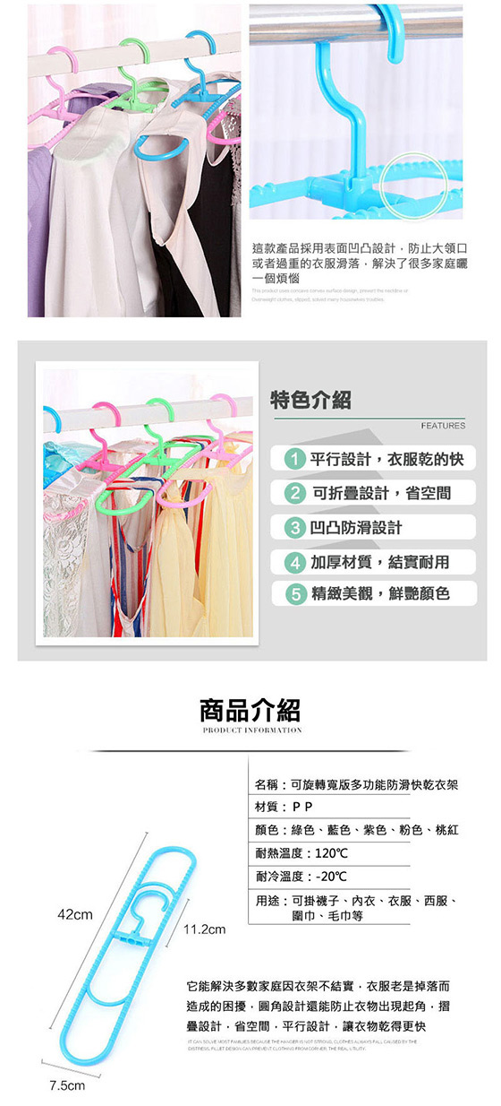 品名:可旋轉寬版多功能防滑快乾衣架